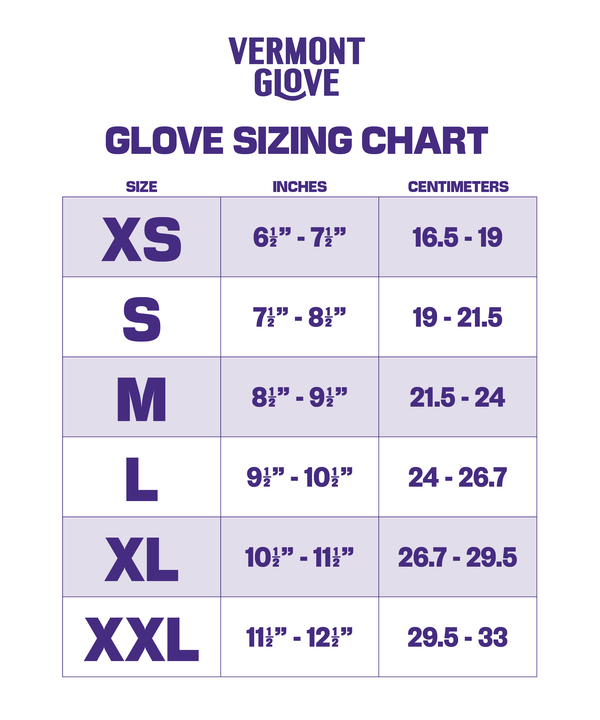 Reach out to us at hello@vermontglove.com and we will work with you to pin down the correct size.